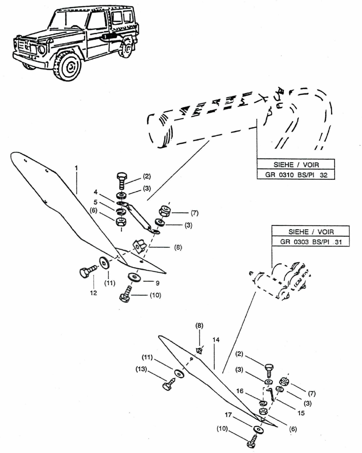 Es handelt sich bei den meisten Teilen um Original Mercedes oder Bosch Artikel, welche für den Puch 230 GE gefertigt wurden.